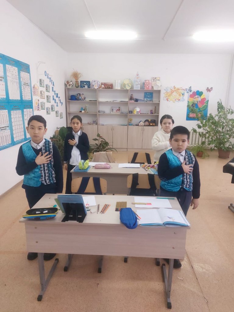 Оқушылар оқу аптасын Қазақстан Республикасының Әнұранымен бастады