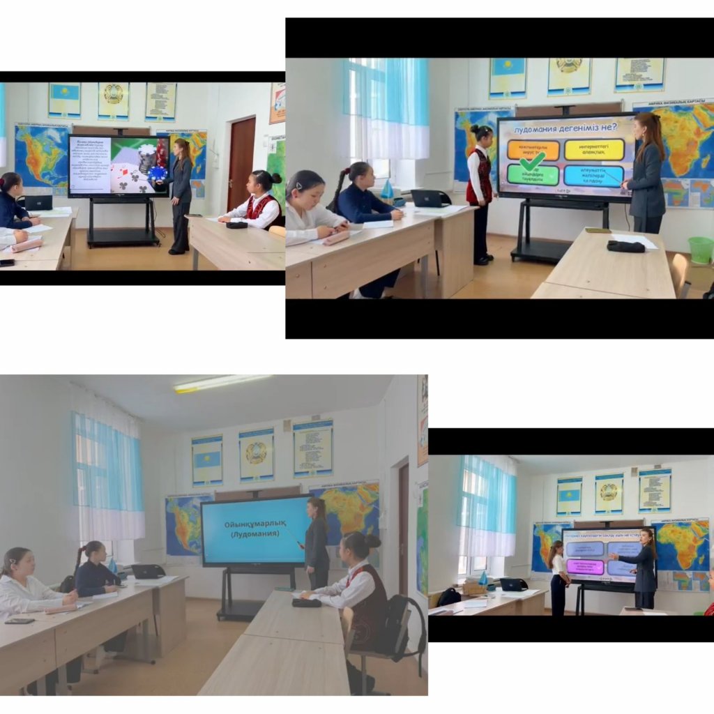 7 А сынып оқушыларына “Лудомания” тақырыбында сынып сағаты өткізілді. Сабақтың мақсаты: ойынқұмарлықтың зияндарын түсіндіру, оқушыларды жауапкершілікке, өз денсаулығына және қаржылық жағдайына сақ болуға үйрету, сондай-ақ дұрыс шешім қабылдау дағдыларын дамыту....