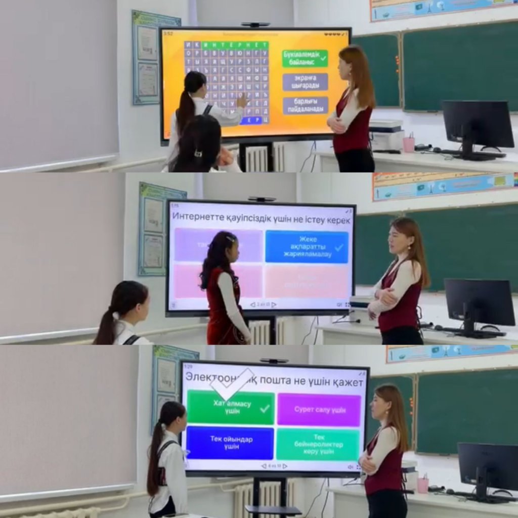 Сабақ барысында интернеттегі қауіпсіздік ережелері, жеке деректерді қорғау, кибербуллингтің алдын алу және әлеуметтік желілерді дұрыс пайдалану туралы...