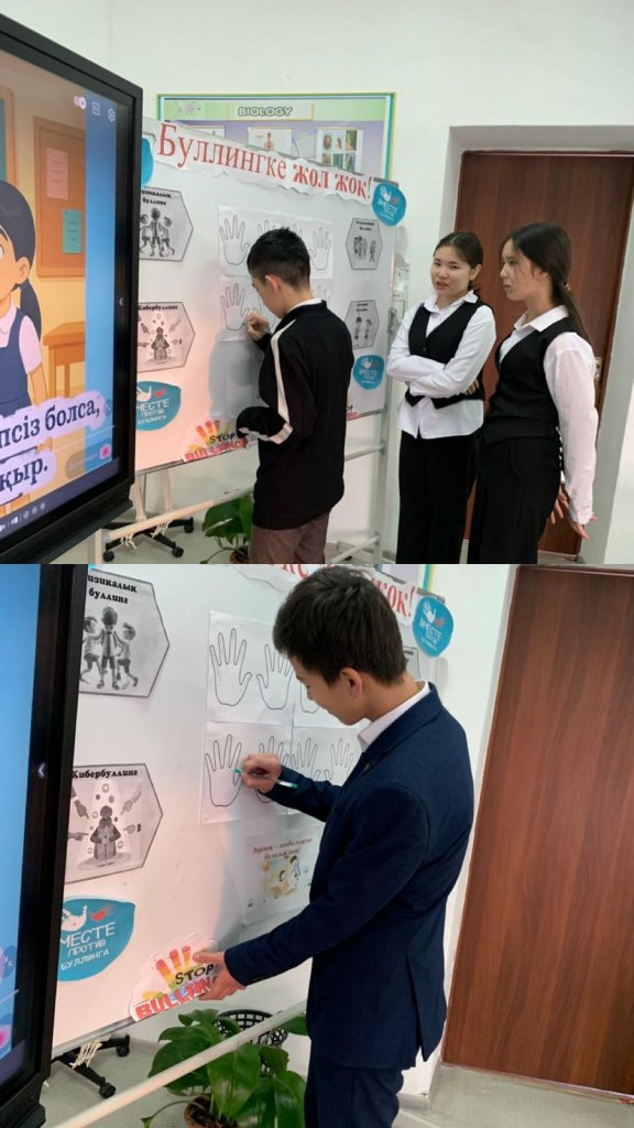 8- сынып оқушыларына тәрбие сағаты өтті.Тәрбиe сағаттың тақырыбы:«Буллингтен қорған!» /ДосболLIKE Мақсаты :Оқушыларға буллингтің не екенін түсіндіру .Буллингтің түрлері мен оның әсерлерін талқылау.Буллингтен қорғану жолдарын үйрету.