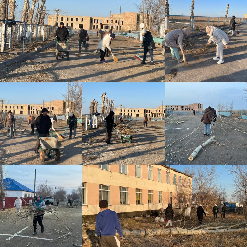 Мектептің алдындағы ескі ағаштар санитарлық мақсатта кесілді. Аталған жұмысқа мектеп ауласын көркейту мақсатында мұғалімдер белсене атсалысты. Ұжымдық еңбектің нәтижесінде аула бұрынғыдан да таза әрі жинақы көрінеді.