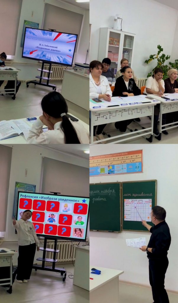 27 қараша 2025 жылы 7 «А» сынында гуманитарлық пәндер декадасы жоспарына сәйкес орыс тілі мен әдебиеті пәнінен ашық сабақ өткізілді. Оқушылар Н.А. Заболоцкий шығармашылығымен танысып, «Сырт келбеті жақсы емес қыз» өлеңін талдап, шығарманың негізгі идеясын анықтады.