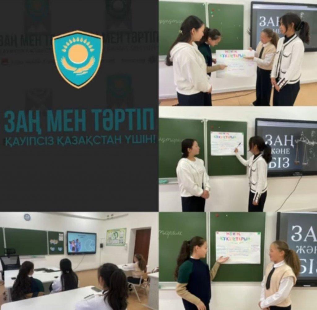 Ұзынкөл жалпы орта білім беретін мектебінде «Заң және тәртіп» тақырыбында танымдық сағат өткізілді. Шара барысында оқушыларға құқықтық тәрбие беру мақсатында заңның маңызы, тәртіп сақтау ережелері туралы мәліметтер беріліп, түрлі өмірлік жағдайлар талқыланды. Бұл іс-шара оқушылардың құқықтық сауаттылығын арттырып, тәртіпке деген жауапкершіліктерін нығайтуға бағытталды.
