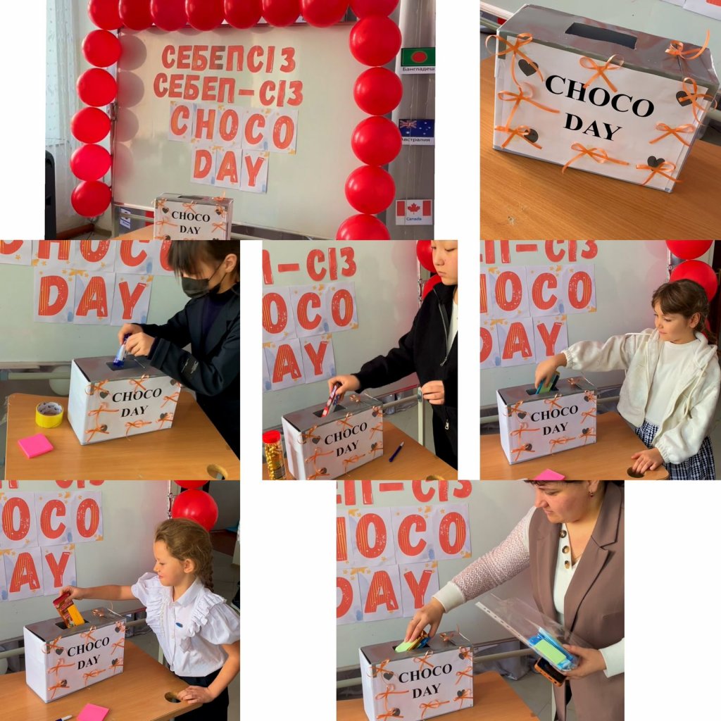 Бүгін мектебімізде «Choco Day» өткізілді. Оқушылар мен мұғалімдер алдын ала өздерінің дайындаған шоколадтарын арнайы жәшікке салып, кімге арнағандарын жазып қалдырды. Іс-шараға оқушылар ерекше қызығушылықпен, белсенді түрде қатысты. Бұл күн барлық қатысушыларға көтеріңкі көңіл күй сыйлады.