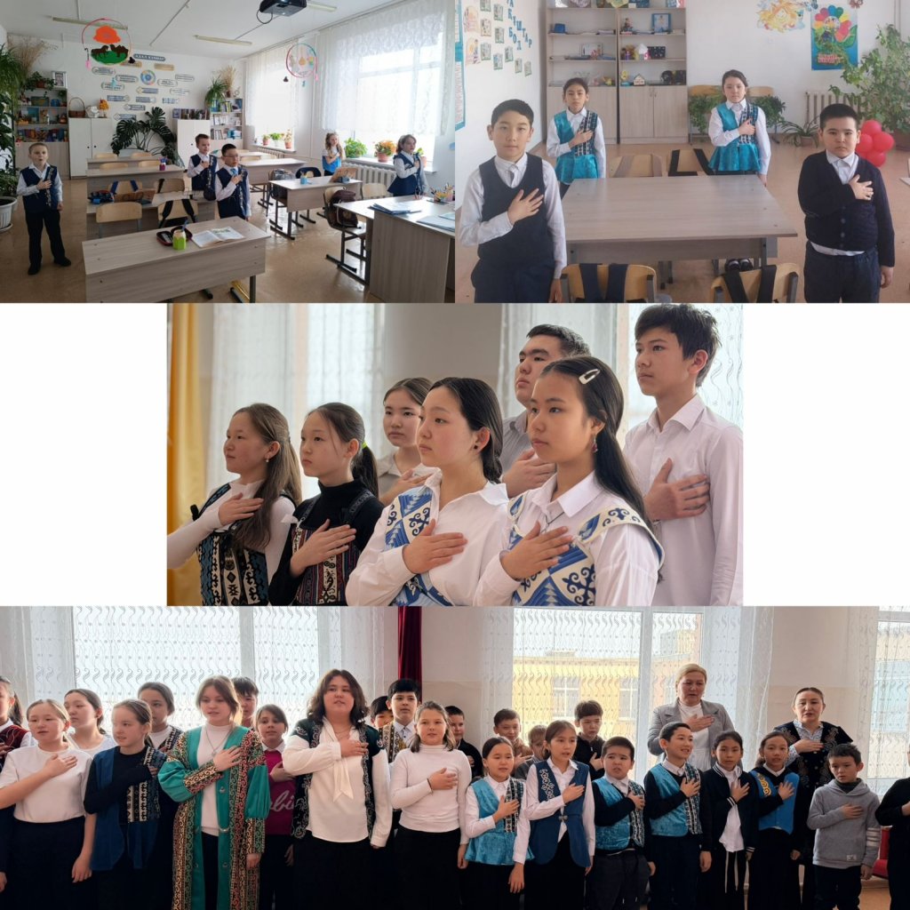 «Адал Азамат» біртұтас тәрбие бағдарламасы бойынша оқушылар оқу аптасын Қазақстан Республикасының Әнұранымен бастады